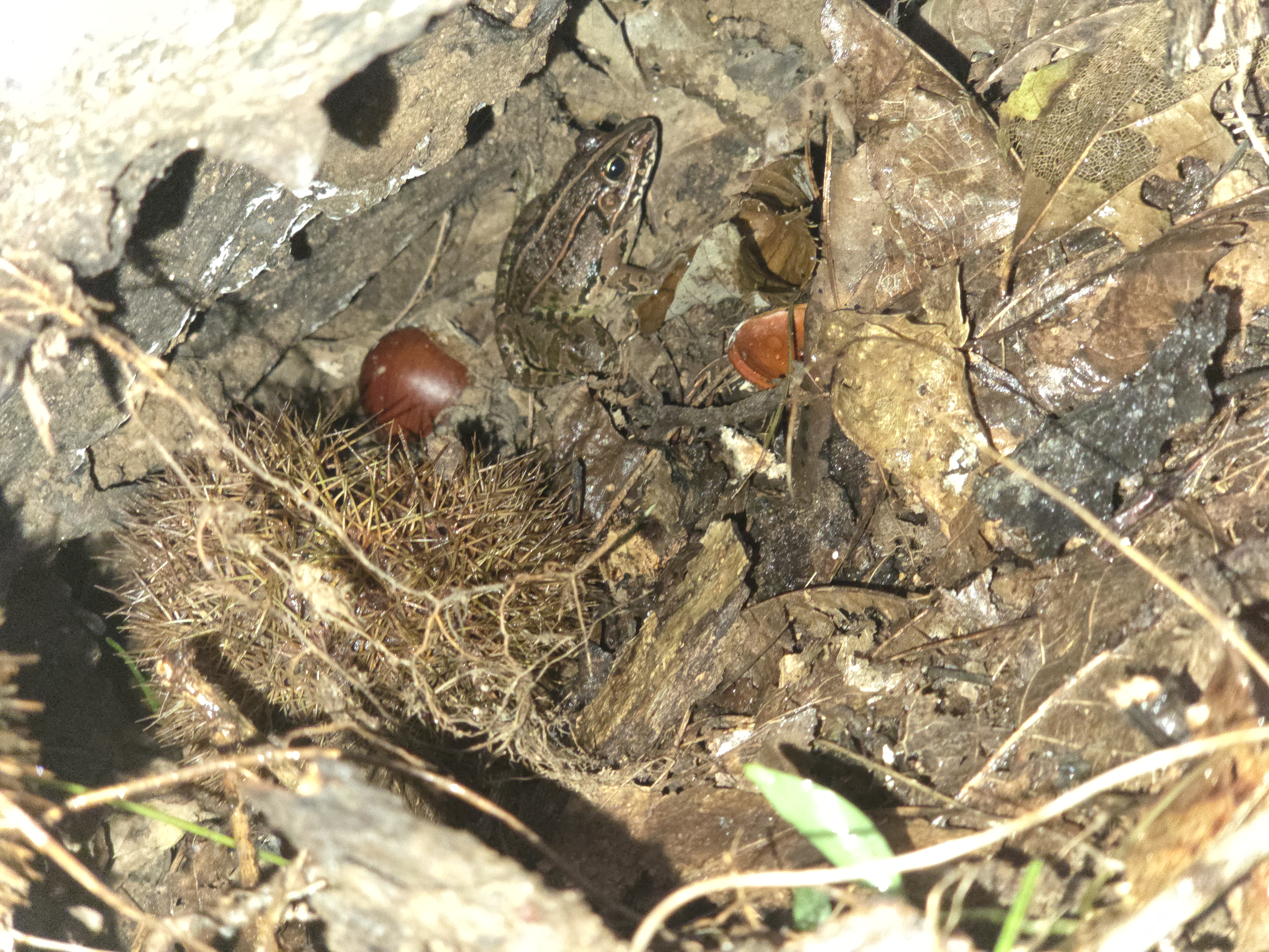 밤줍다가 나무아래에서 참개구리도 발견함..!!!